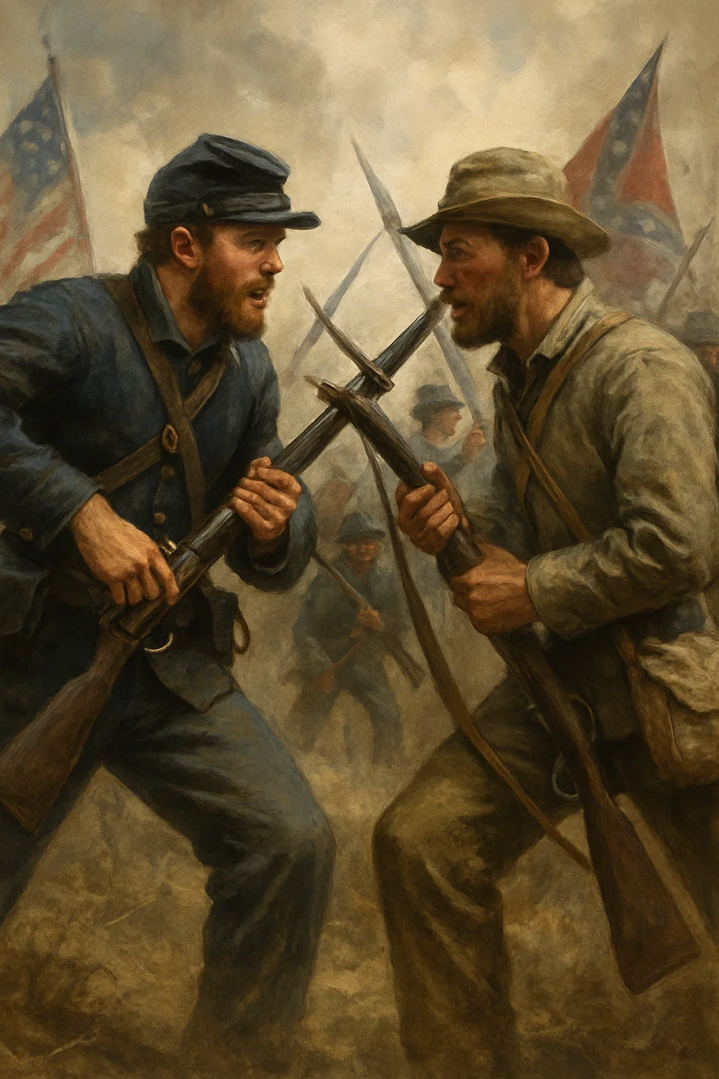 Early battles like Bull Run, Shiloh, and Antietam shattered romantic illusions of glory. New technologies — rifled muskets, railroads, ironclads — turned fields into charnel houses. Casualty lists stretched across newspaper columns like funerary scrolls.